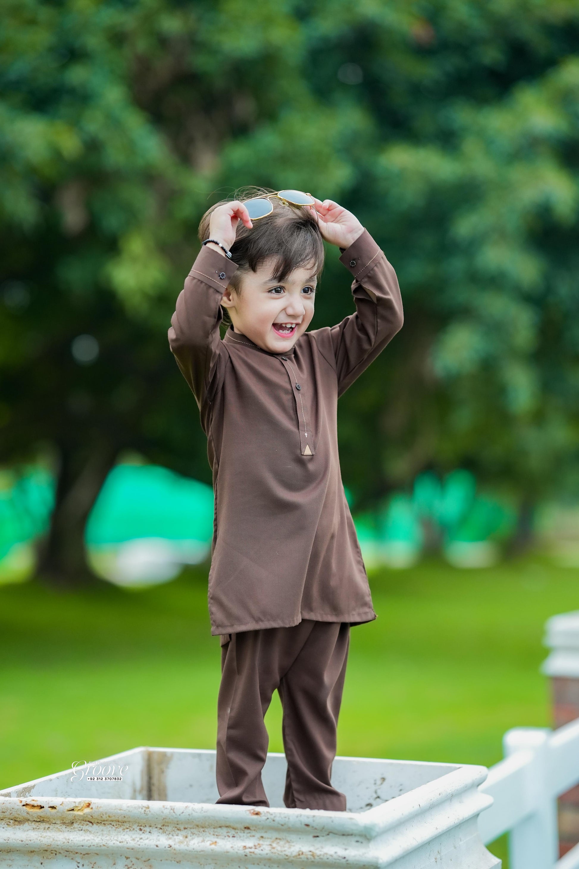 Discover Versatility with our premium washing wear fabric in brown colour ideal for you kids stylish and comfortable wardrobe